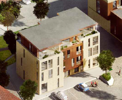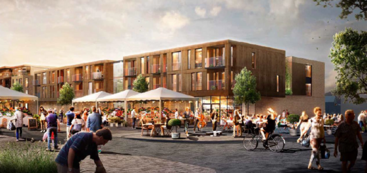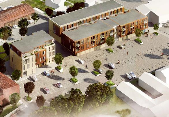 Rådhuspladsen Hørning - Nybygning 64 lejligheder, dagligvarebutik og kælder.