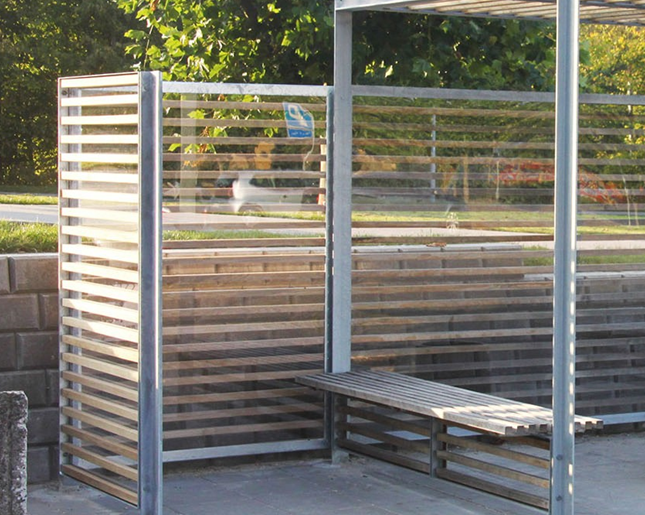 carporte med ovenpå liggende tagterrasse med fine detaljer som værn i glas og lister.