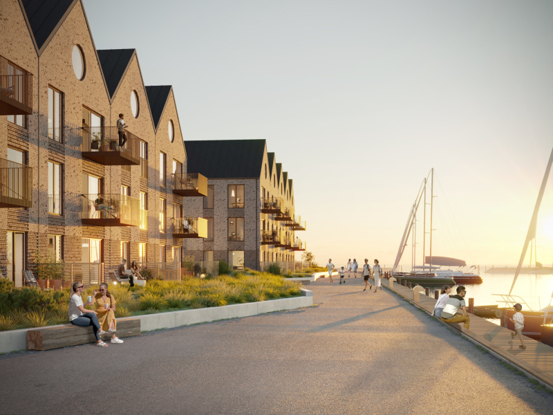 Etape 1: KLIMAMURSPROJEKT – Kystsikring af området er udført for at beskytte byggeriet mod de maritime omgivelser som følge af klimaændringerne og stigende vandstande.