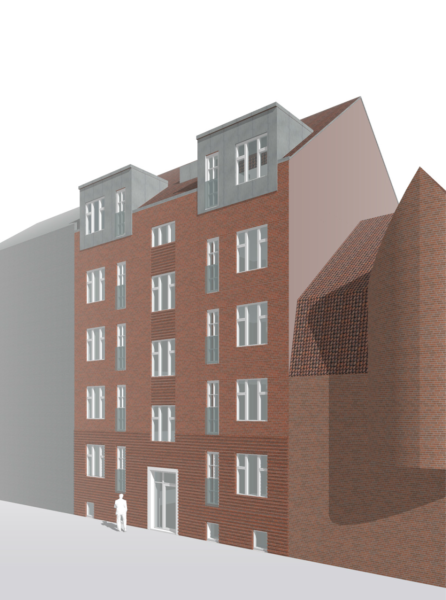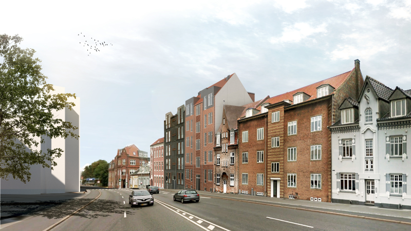 Facaderne er udført med recesmurværk og en tydelig base mod gaden, hvilket sikre en god detaljeringsgrad og overgang mod gaderummet.