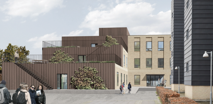 Den nye bygning indeholder 77 nye værelser i varierende størrelser, fordelt på 5 forskellige værelsestypologier - Herunder 2 større tilgængeligsheds værelser, der opfylder kravet til kørestolsbrugere.