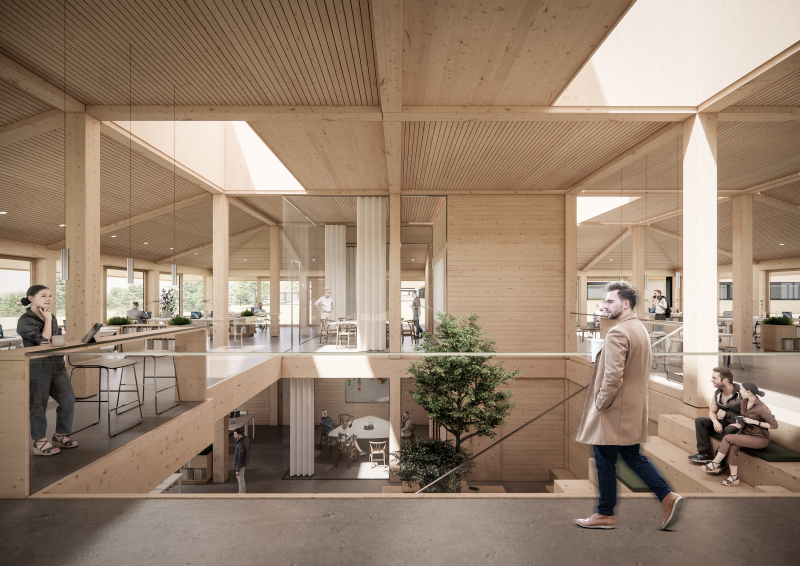 Byggeriet er baseret på bæredygtige løsninger med lavt CO2-aftryk, fleksibel plandisponering og et sundt indeklima med fokus på godt lys, akustik og materialer uden skadelige stoffer.