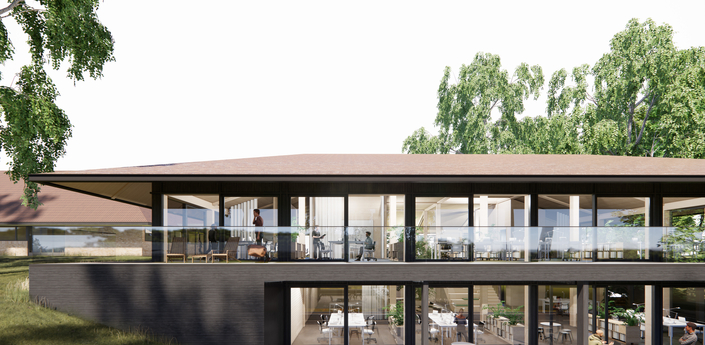 De nye bygninger indrammer den omkringliggende natur og styrker forbindelsen til parken med attraktive uderum. Arkitekturen er nordisk i sit udtryk – enkel, ærlig og eksklusiv uden at være prætentiøs.