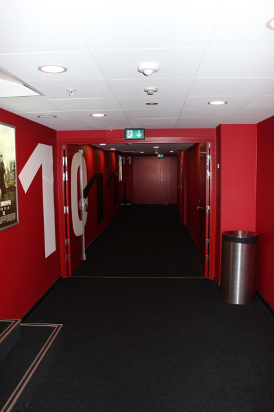 Biograferne blev opbygget på nye betongulve udlagt på underlag af afgrænset mineraluldsflåder så lyd kunne afskærmes mellem de øvrige områder, 2 til 3 lags dobbelt gipsvægge og lydlofter incl. nedhængte akustiksystemer.Indretning af lokaler bestod i opbygning med podier i stålkonstruktion samt trækassetter, gulvbelægninger, malerarbejder og ikke "mindst" at forglemme den store og besværlige omlægning og etablering af el, varme og ventilation for sagen.