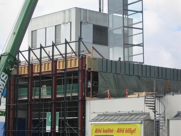 Nedbrydning for udvidelse. Udgravning og bærende konstruktion for ny kælder/parterre. Hovedkonstruktioner i niveau 1 & 2 med præfabrikeret beton søjler, bjælker og huldæk samt stålkonstruktion omkring elevator. Niveau 3 og tagskiven er udført med stålkonstruktion samt lette dæk- og trapezplader/tagpap.