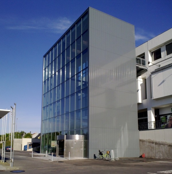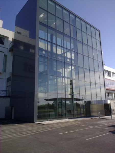 Bygningen er opført med bedste levende "hovedelement" i stålkonstruktion som giver den bedste mulighed for en "transperant" bygning hvormed facader er af glas/alu og gavle i aluminiumskasetter med skjulte samlinger.
