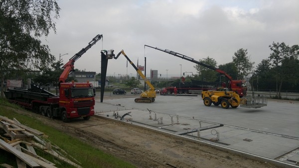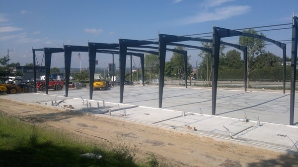 Hallens bærende system består af stålrammer med klimaskærm i hvide beton sandwichelementer og rockpanel i varienende farvespil.
