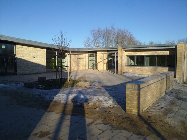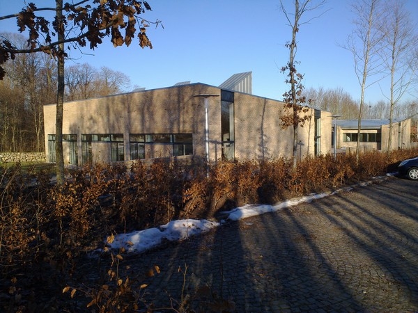 Bygningen er opført fuldmuret i hårdtbrændt teglsten med store og varierende Velfac partier samt tagbeklædning i falset zink.