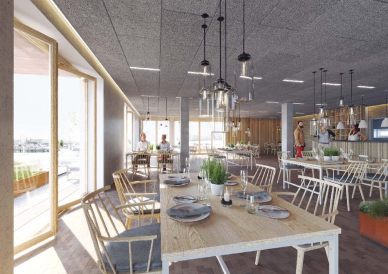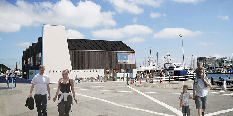 Visualiseringerne viser ønsket om, at fastholde et maritimt udtryk tilpasset de eksisterende fiskehuse i sotmalet træ.