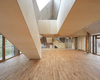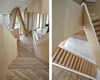 I hovedhuset er der leget med former fx. en trappe der snor sig skulpturelt svævende.
